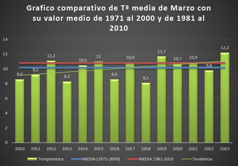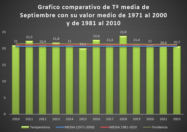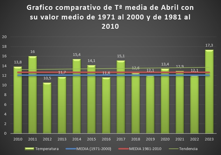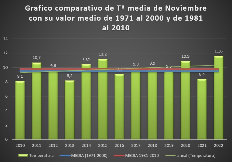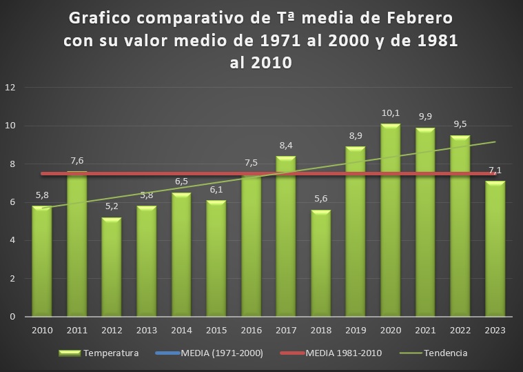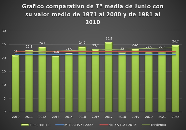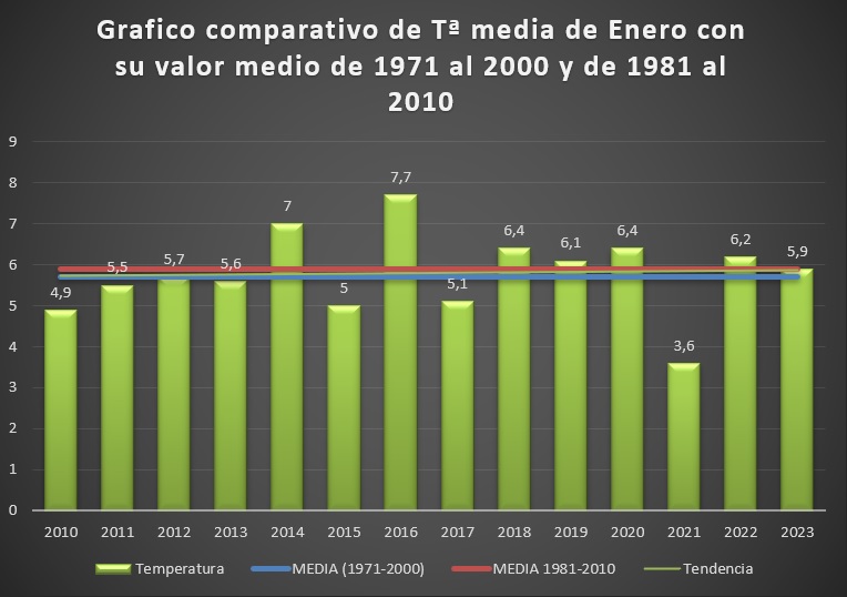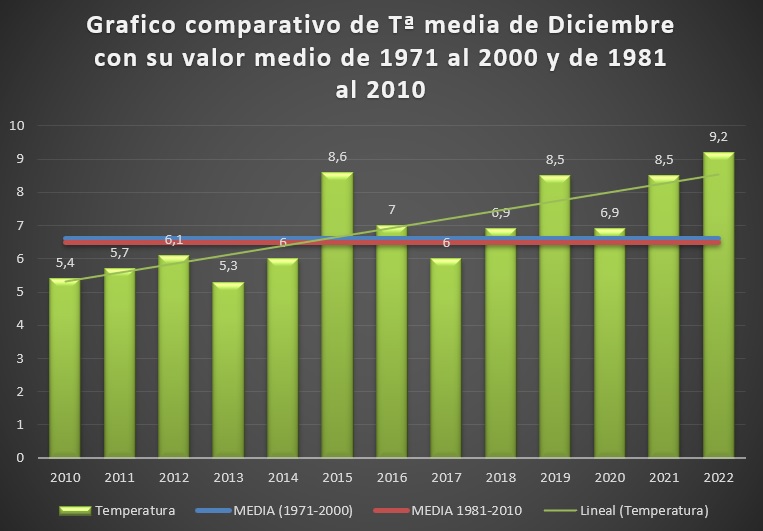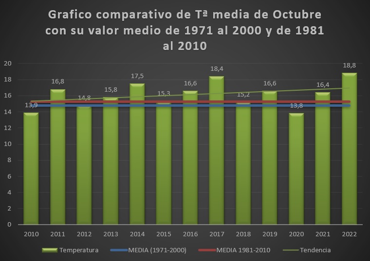 Grafico Comparativo de Temperatura Media con su valor medio de 1971 al 2000 y de 1981 al 2010