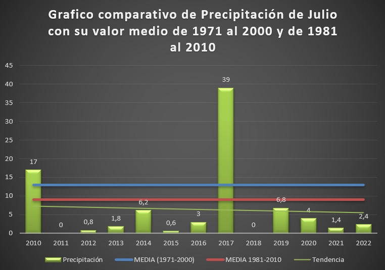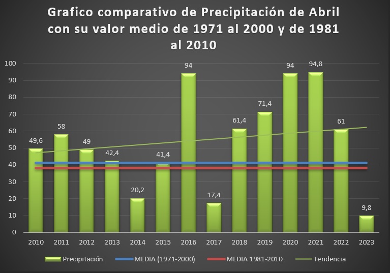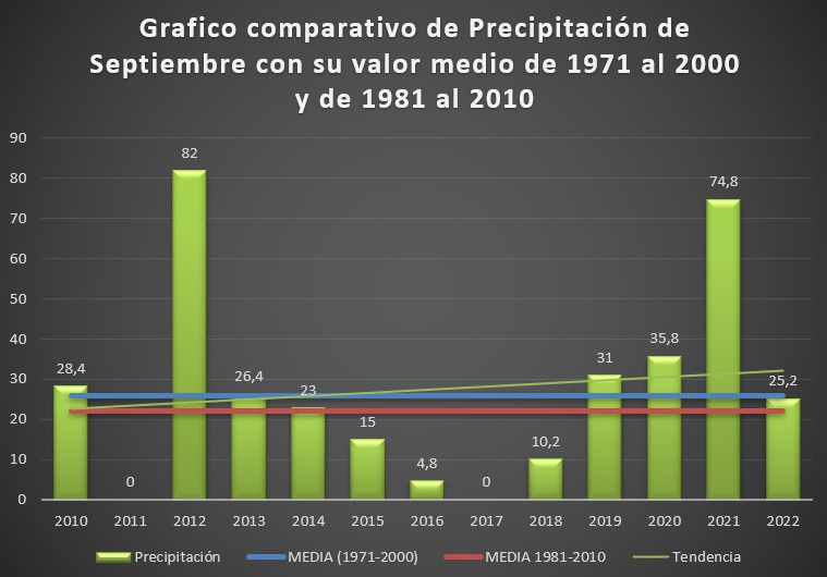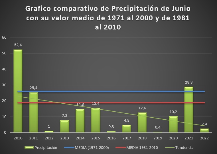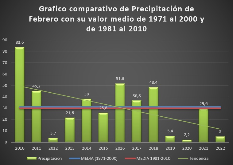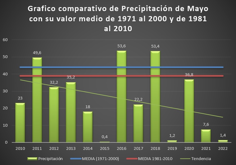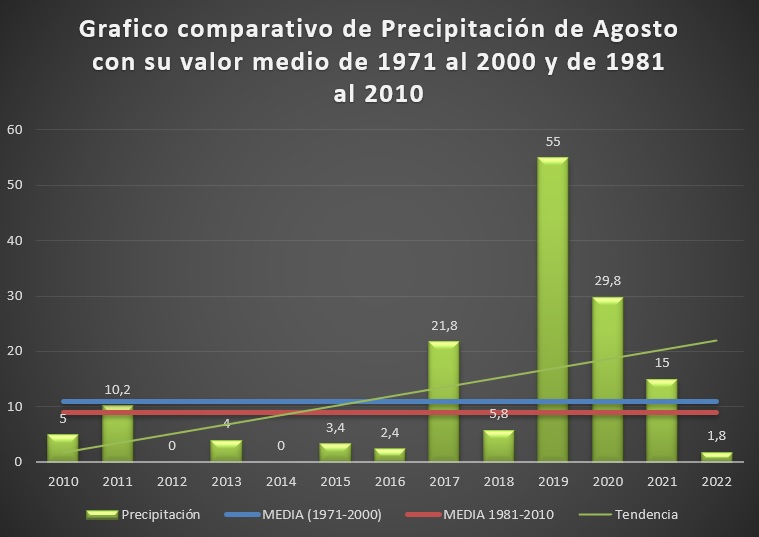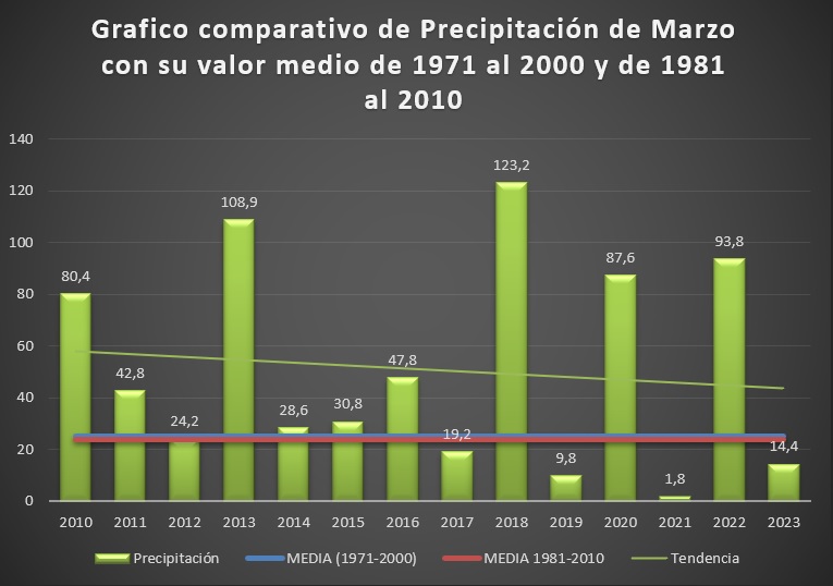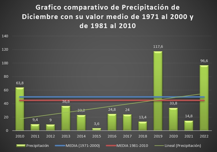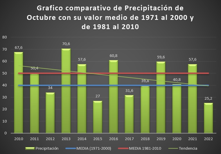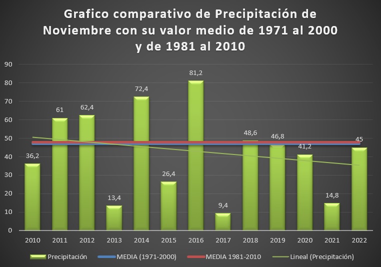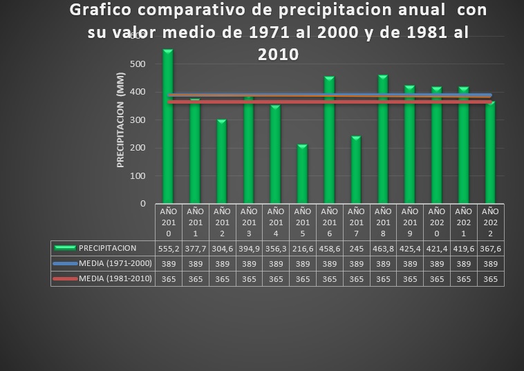 Grafico Comparativo de Precipitación con su valor medio de 1971 al 2000 y de 1981 al 2010